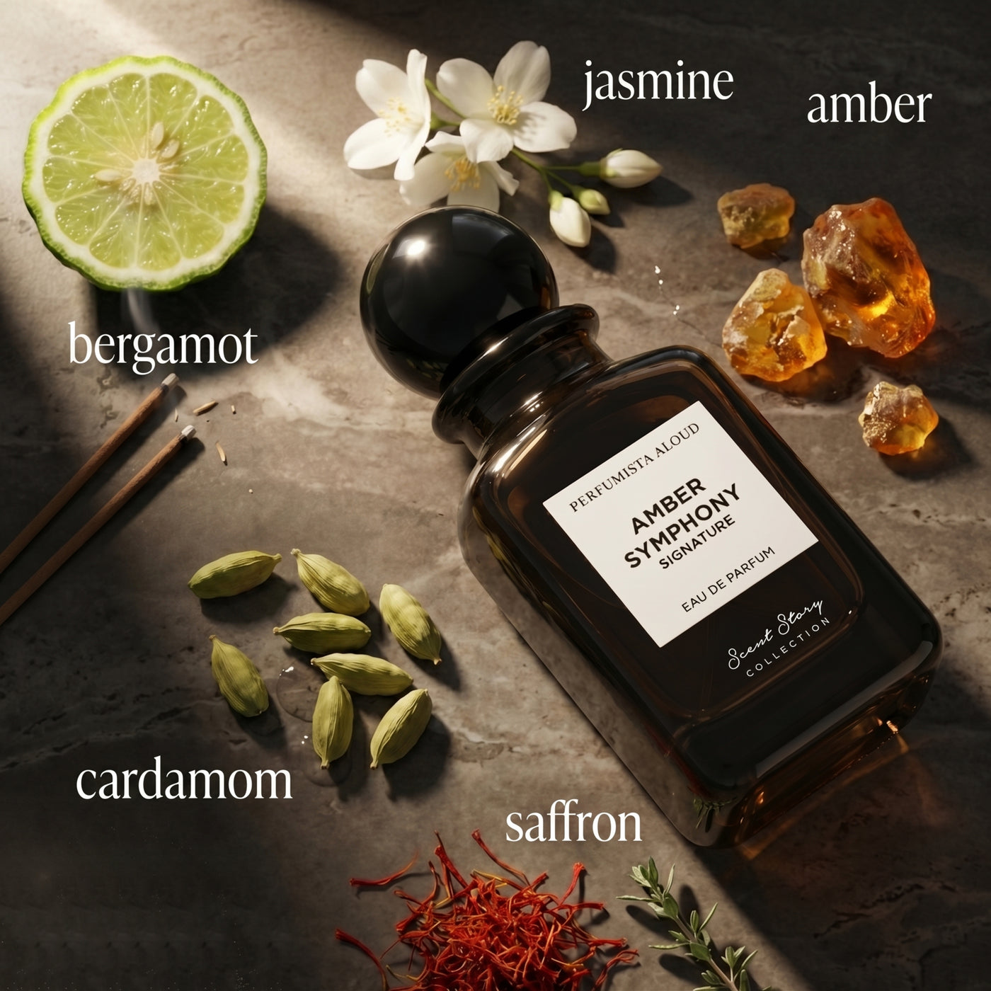 Middle Notes: Dried Fruit, White Tobacco, Sandalwood, Turberose, Saffron, Osmathus, Jasmine, Orris